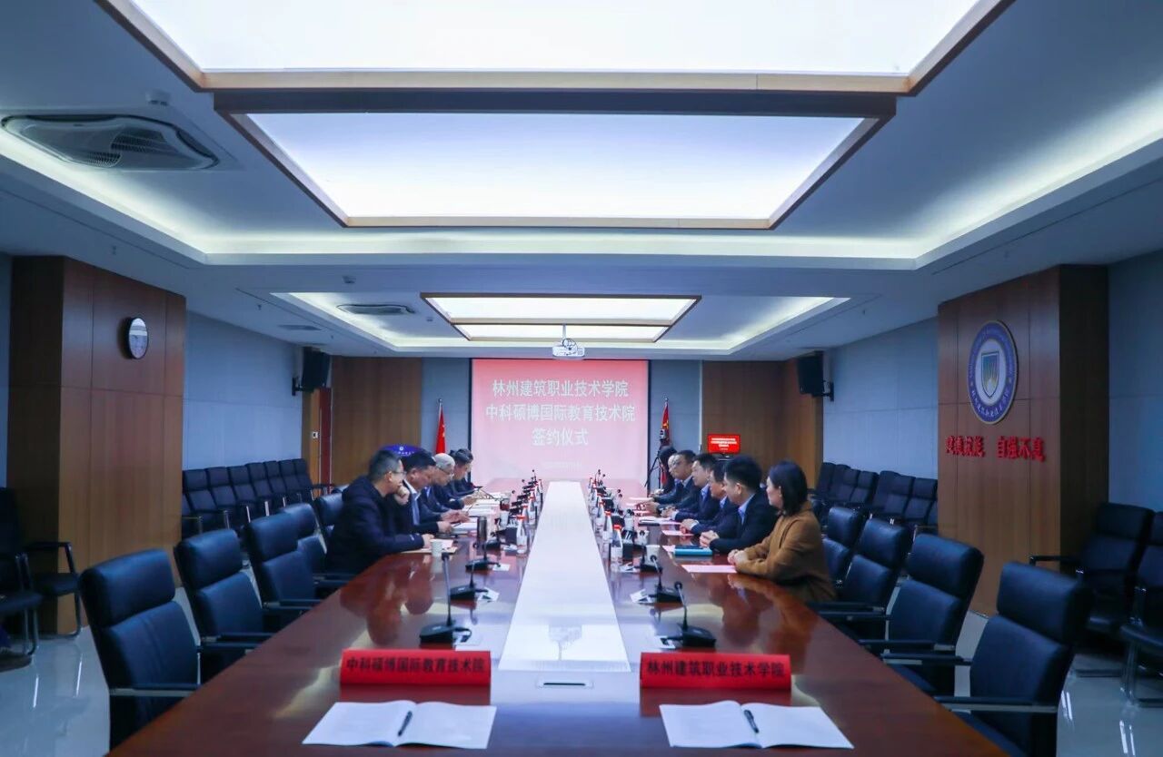 10月28日,林州建筑职业技术学院(以下简称“林州建院”)与中科硕博国际教育技术院(以下简称“中科硕博”)合作签约仪式隆重于行政楼211会议室召开。中科硕博国际教育技术院院长张怀仁一行7人莅临现场,林州建筑职业技术学院校长张清华出席仪式并致欢迎词,中科硕博张怀仁院长随后发表致辞。签约仪式由林州建院党委副书记、副校长郭鹏主持。