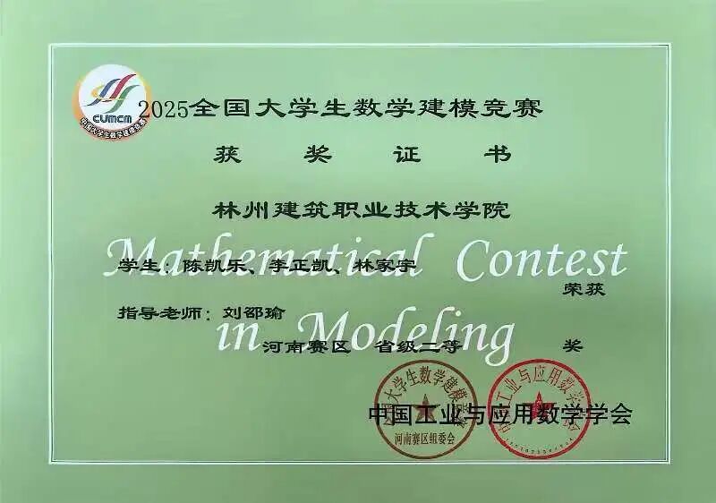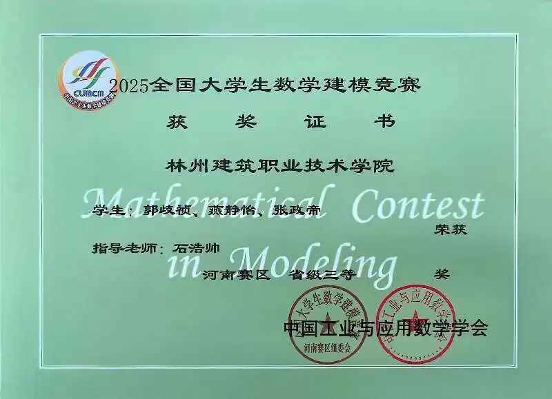 近日,2025年全国大学生数学建模竞赛成绩揭晓,林州建筑职业技术学院(以下简称“林州建院”)学子在此项被誉为中国高校规模最大的基础性学科竞赛中取得历史性突破,选派4支参赛团队,一举斩获国家级二等奖1项、省级二等奖1项、省级三等奖2项的优异成绩。这一佳绩不仅彰显了学子们的学习研究精神,更是学校深化教学改革、注重应用型人才培养的生动体现。
