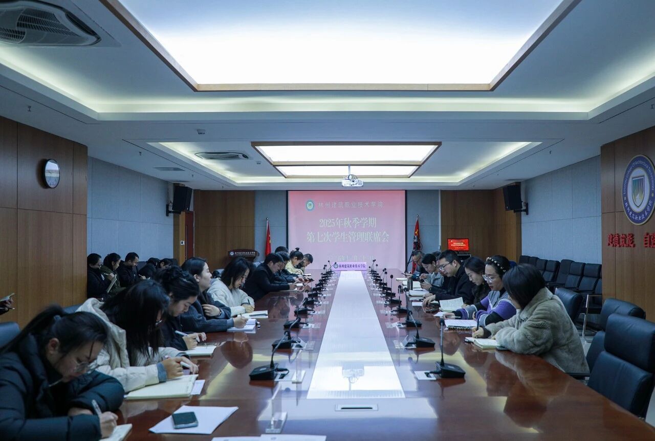 为全面梳理年度工作,扎实做好期末阶段学生管理与校园安全保障,12月23日,林州建筑职业技术学院在行政楼211会议室召开2025年秋季学期第七次学生管理联席会。校党委副书记、副校长郭鹏出席会议并讲话。党务工作部、学生工作部、总务处及相关服务单位负责人参加会议。会议由学生工作部部长李帅主持。