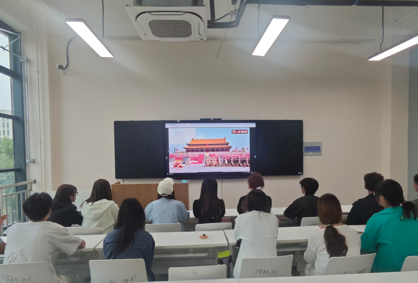 当天,学院各教室、会议室热闹非凡,师生们怀着崇敬与激动之情,早早来到现场,有序就座等待直播开始。当激昂的国歌奏响,师生们全体起立,庄严肃穆地高唱国歌,爱国之情在心中澎湃翻涌。随着阅兵仪式拉开帷幕,徒步方队迈着整齐划一、铿锵有力的步伐,展现出钢铁之师的威武英姿;装备方队中,各类先进武器装备霸气亮相,彰显着我国雄厚的国防实力。