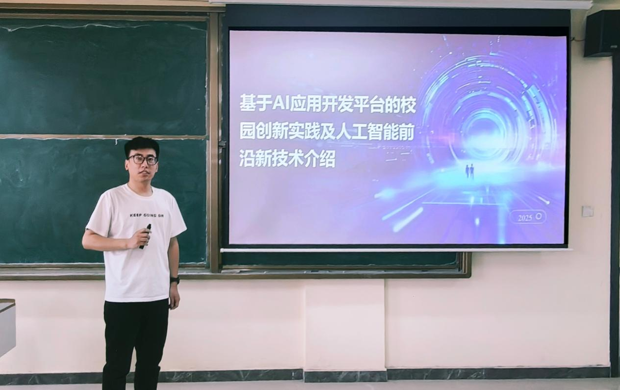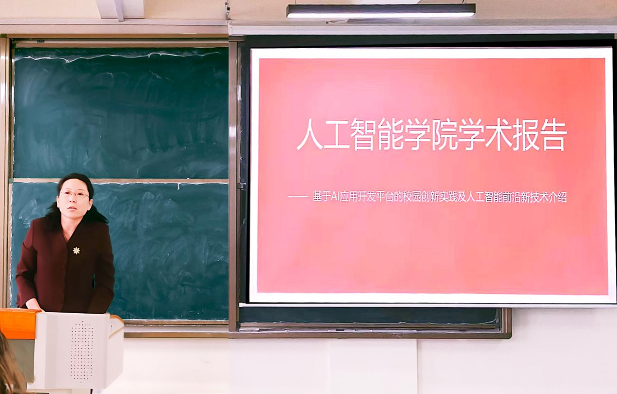 6月4日,人工智能创新学术报告会-基于AI 应用开发平台的校园创新实践及人工智能前沿新技术介绍-圆满落幕。人工智能学院副院长薛红英组织召开本次会议,申昊伟老师担任主讲人,以"智启未来:AI应用开发平台驱动的校园创新实践与前沿技术探索"为主题,为全院师生呈现了一场AI技术与教育创新深度融合的学术盛宴。