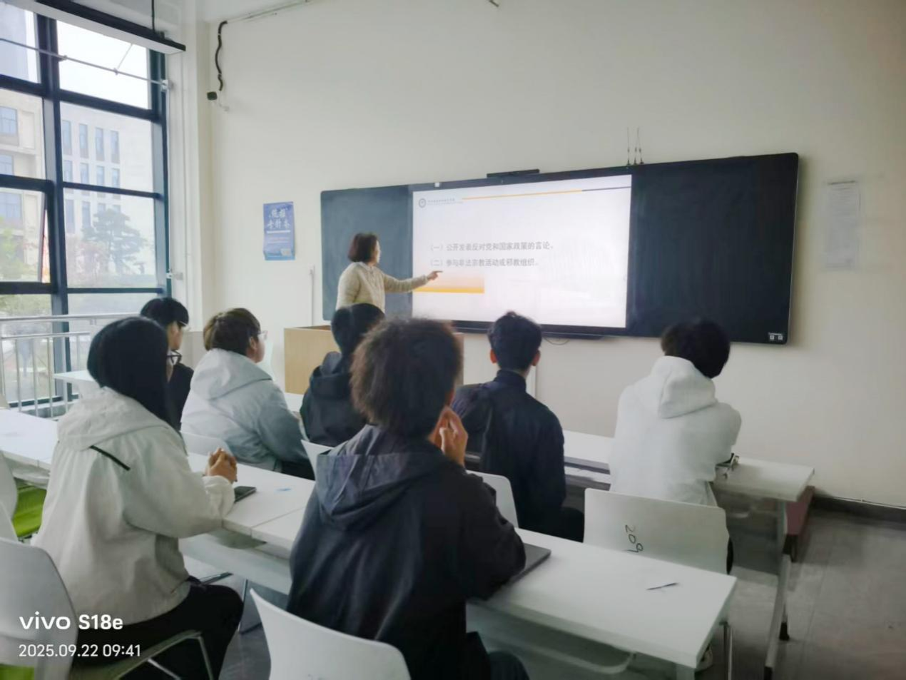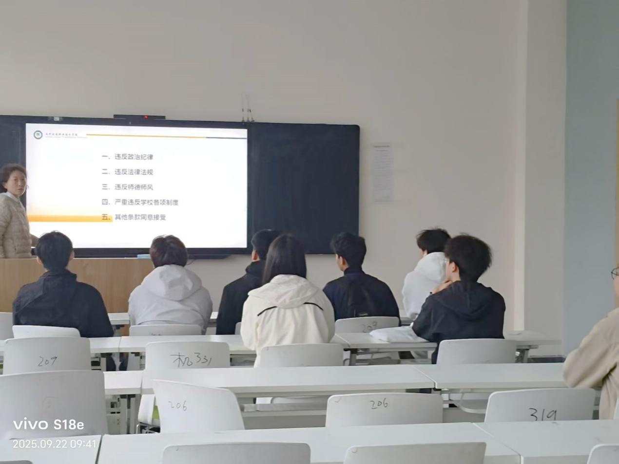 2025年9月22日上午9点,计算机技术教研室在2号实训楼209教室举办了员工履职承诺书学习活动。教研室主任薛红英老师及全体教师共同参与,旨在进一步加强师德师风建设,规范教育教学行为。