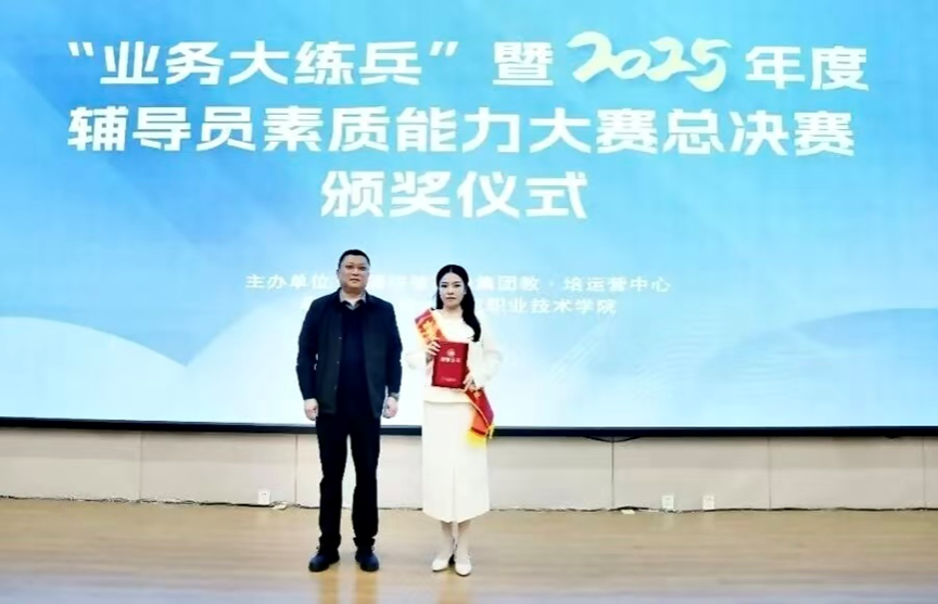 近日,在中原华信控股集团教·培运营中心主办、学校承办的2025年度业务大练兵暨辅导员素质能力大赛决赛中,我院辅导员路培玲老师凭借扎实的专业素养、出色的综合能力与稳定的临场发挥,在主题演讲、案例研讨、谈心谈话等多个竞赛环节中脱颖而出,最终斩获大赛第一名的优异成绩!