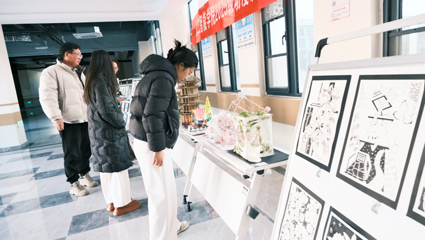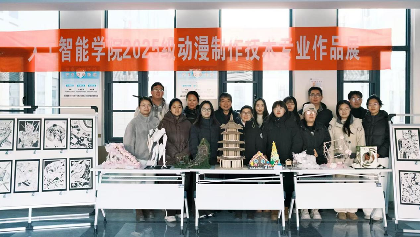 2026年1月12日,人工智能学院2025级动漫制作技术专业成功举办了以"形、构、筑——三维视界"为主题的基础课程结课作品展。学院院长沈献博教授、动漫制作技术教研室主任刘艳芳老师、学院教学督导杨森、王素花、李金贝老师及人工智能学院教师出席参观展览。本次展览集中展示了学生在平面构成、色彩构成和立体构成三大基础课程中的学习成果,全面呈现了新生代动漫人在视觉造型基础领域的扎实功底与创新思维。