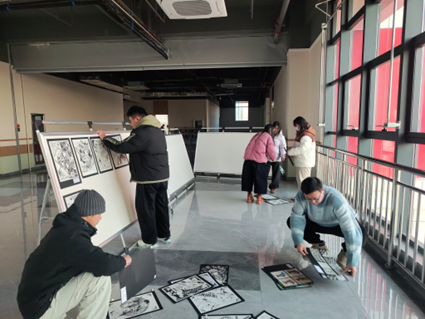 前期杨森、刘艳芳、李星慧、雷超惠、李梅霞五位老师带领学生挑选作品布置场地