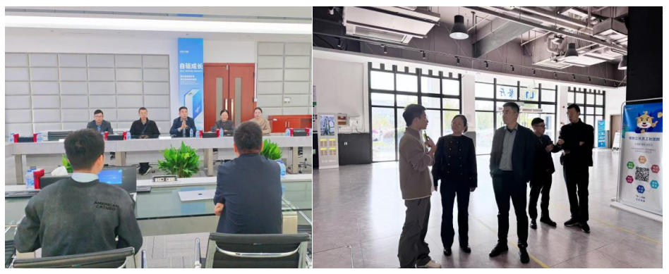 机电工程学院院长田彦彦和人工智能学院平台副院长刘杰详细介绍了专业设置、师资力量及学生特点,主动对接企业需求,并反复关切实习生的工作内容、技能提升空间以及生活保障细节。