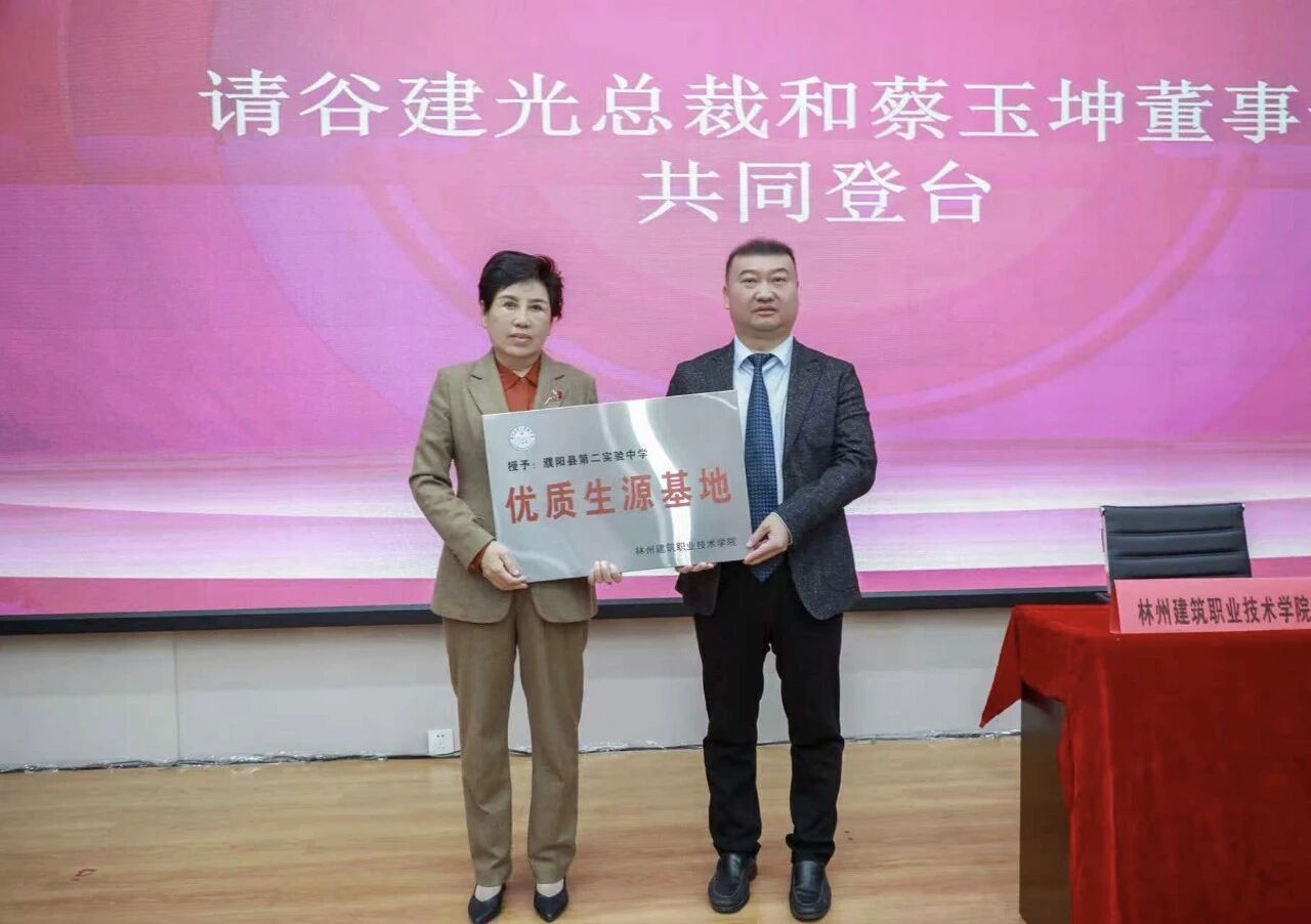 会上,林州建筑职业技术学院校长张清华与濮阳县第二实验中学校长张克来签署合作协议,谷建光总裁与蔡玉坤董事长共同完成授牌。随后,全体参会人员合影留念,并参观了林州建院校园,实地考察了产教融合实训基地。