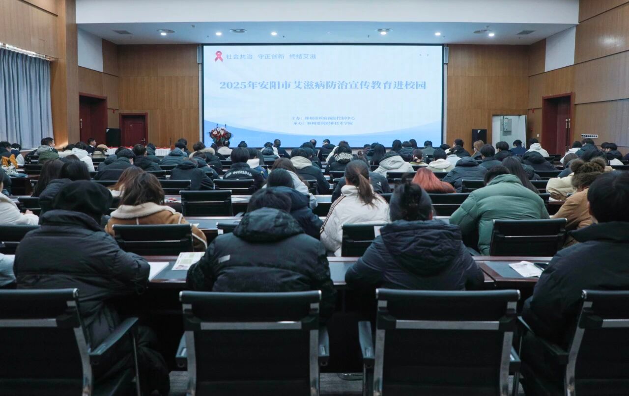 为切实筑牢校园健康防线,有效提升青年学生艾滋病防治意识和自我保护能力,12月4日上午,安阳市艾滋病防治宣传教育进校园活动在我校隆重举行。林州市疾控中心主任张志德、副主任任振环,安阳市疾控中心性病艾滋病科副科长陈慧,河南护理职业学院临床医学系副主任江雷振,我校学生工作部部长李帅、副部长牛予出席活动。学生工作部各部门负责人、各学院学管副院长、分团委书记、全体辅导员及学生代表参加活动。