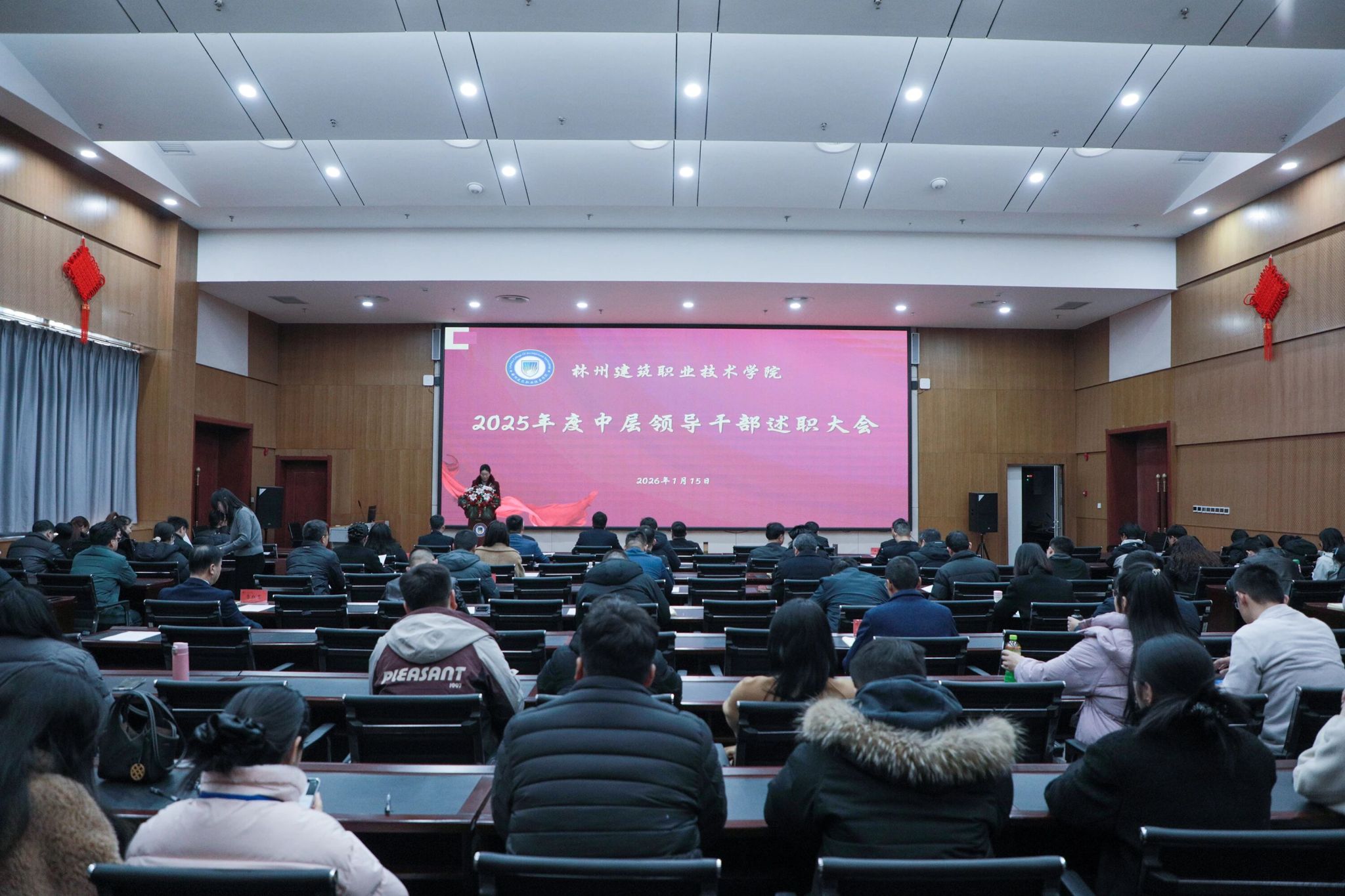 为全面检验中层干部履职成效,凝聚发展合力,推动学校各项事业高质量发展,1月15日下午,林州建筑职业技术学院2025年度中层干部述职大会在行政楼报告厅召开。全体校领导班子出席会议,全体中层干部,全体行管人员及师生代表参加会议。会议由副校长徐春华主持。
