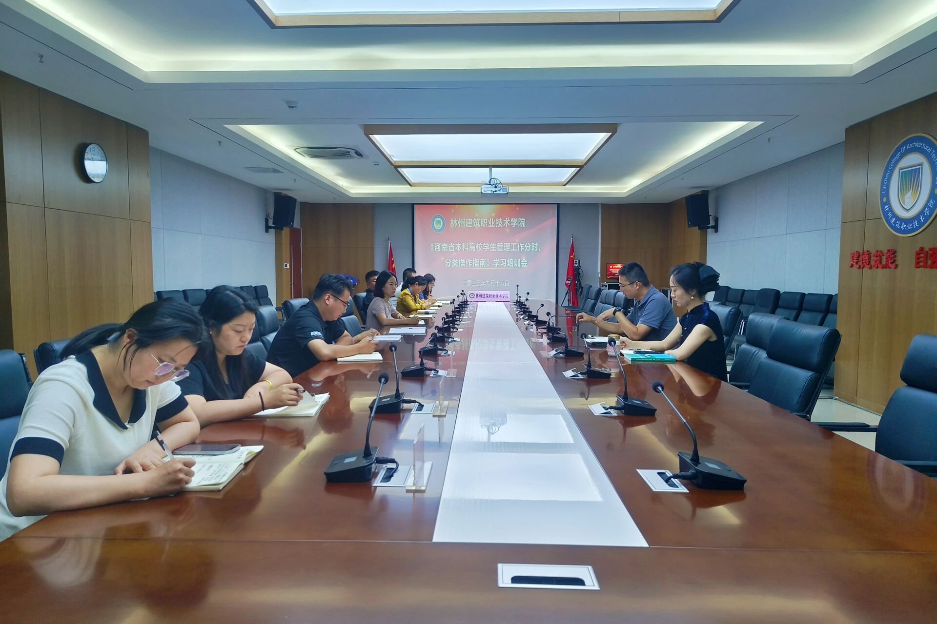 为进一步提升我校学生工作队伍的专业素养与管理水平,学习先进管理经验。9月16日上午,林州建筑职业技术学院学生工作部在行政楼211会议室组织召开《河南省本科高校学生管理工作分时、分类操作指南》学习培训会。学生工作部部长李帅出席会议并做培训,学生工作部副部长牛予,各学院学管副院长、分团委书记参加会议。