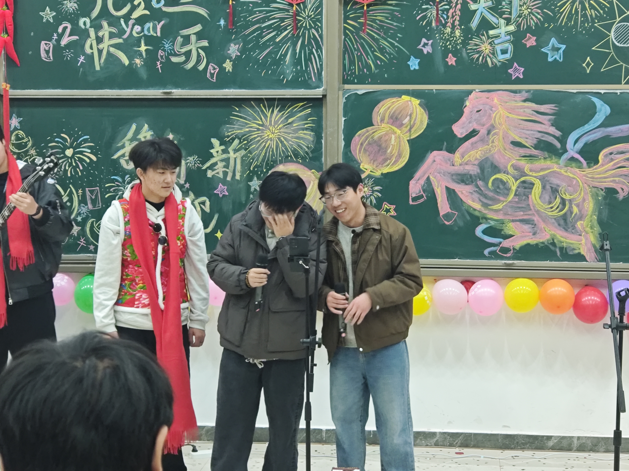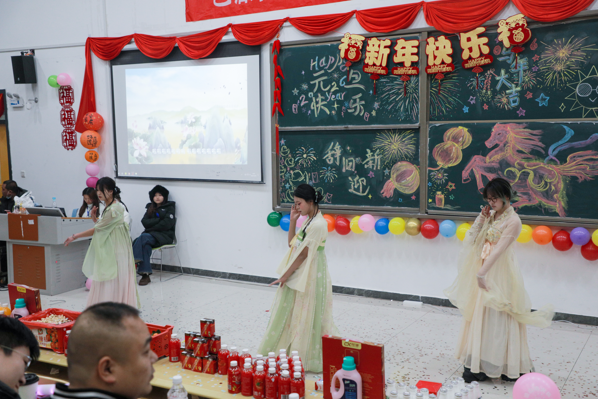灯光流转间,教室被精心布置得温馨雅致,彩带与气球相映成趣。这场汇聚歌声、舞蹈、小品、武术、相声的视听盛宴,每一个节目都凝聚着大家的创意与心血,生动诠释了艺术与教育学院学子的多才多艺与青春活力,为在场的领导、老师与同学们留下了难忘的跨年记忆,也为2025年画上了圆满的句号。