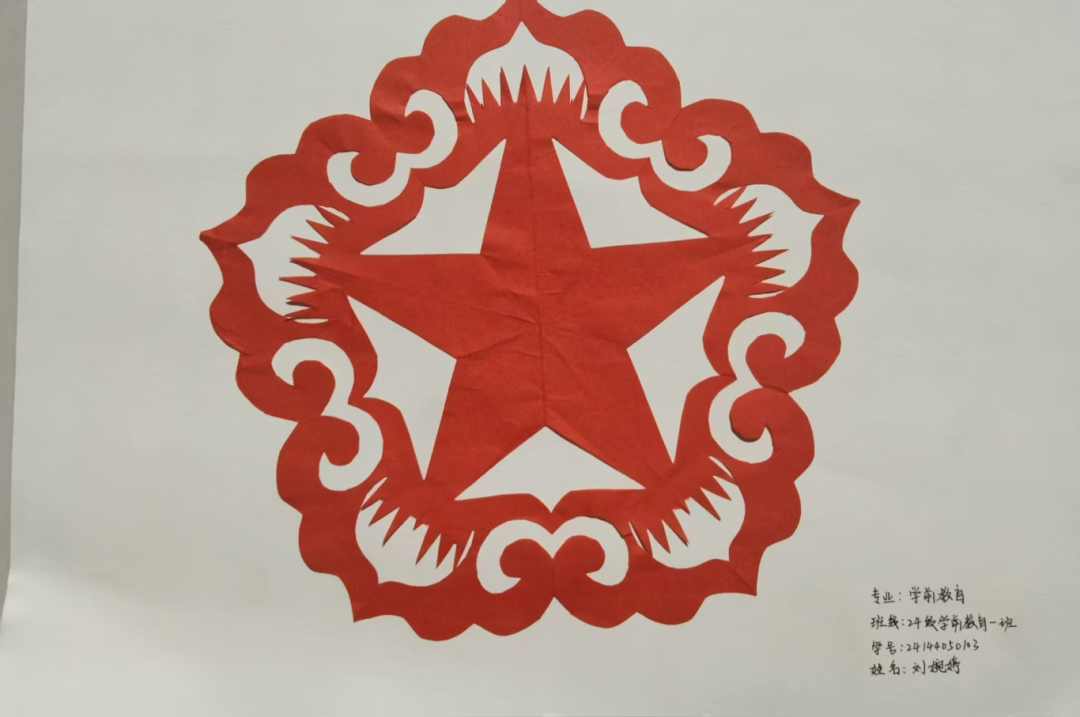 红色的“五角星”剪纸传递着爱国情怀,一幅幅作品不仅是对非遗技艺的生动诠释,更成为双节期间校园里一道独特的文化风景线。不少同学表示,通过亲手创作剪纸,不仅掌握了传统技艺,更深刻体会到中华优秀传统文化的魅力,未来将把非遗元素融入教育教学中,让传统文化在幼儿心中生根发芽。