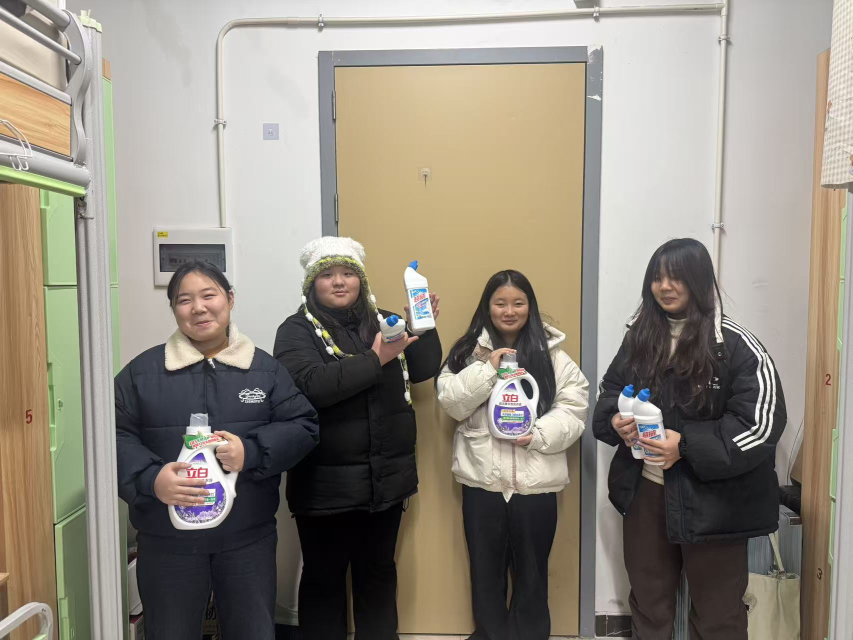 经过严格评选,一批兼具创意性、实用性与氛围感的优秀宿舍脱颖而出。学院将“接地气+超实用”奖品全部送达获奖宿舍:洗衣液、洁厕灵助力日常清洁,卫生纸、承包生活刚需,用贴心福利为同学们的付出点赞。