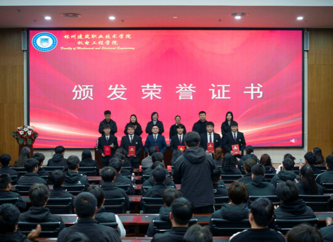 为深入贯彻落实习近平总书记关于青年工作的重要思想,进一步加强学生组织建设,充分发挥其思想政治引领与服务学生成长的桥梁纽带作用,2025年11月6日,林州建筑职业技术学院机电工程学院在行政楼一楼报告厅隆重召开第二届学生组织换届大会暨表彰大会。机电工程学院院长田彦彦、学管副院长马勇杰、校团委书记靳海莉、分团委书记申琳、办公室主任余沛华、全体辅导员以及23、24、25级学生会全体成员和各班班委共同参会。大会由辅导员尹金杭主持。