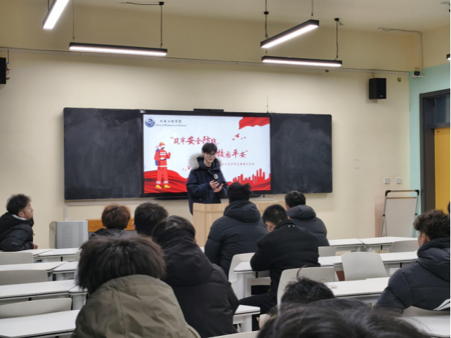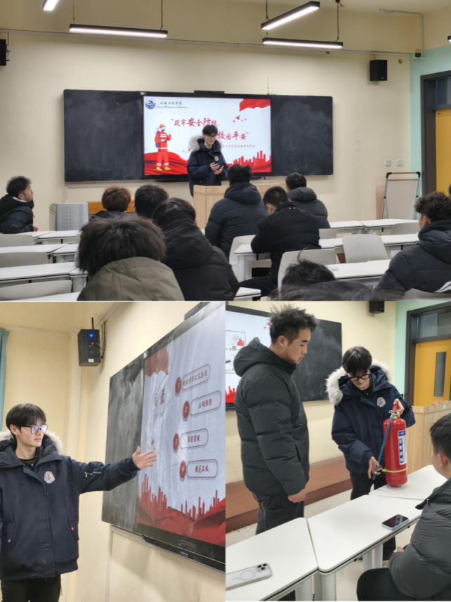 为拧紧校园“安全阀”,筑牢冬季“防火墙”,2025年11月27日,机电工程学院在2号教学楼2201教室成功召开了 “筑牢安全防线,共护校园平安” 消防安全专题团课。各班级团支书齐聚一堂,共同上了一堂生动又实用的安全必修课。